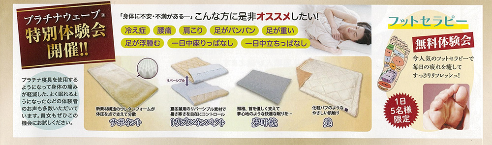 「身体に不安・不満がある…」そんな方におすすめのプラチナウェーブ®寝具。身体の痛みが軽減したとのお声も多数いただいています。この機会にぜひご体感ください。
