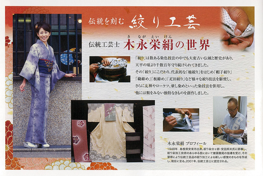 伝統工芸士・木永栄絹(きなが えいけん)氏が、長年培った卓越した技術と、新しい感性で生み出す唯一無二の絞りの世界をご堪能ください。