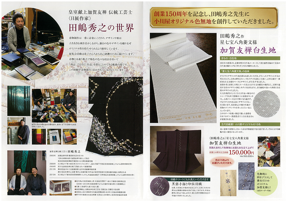 今回は小川屋150周年を記念し、田嶋氏にオリジナル色無地の制作を依頼いたしました。