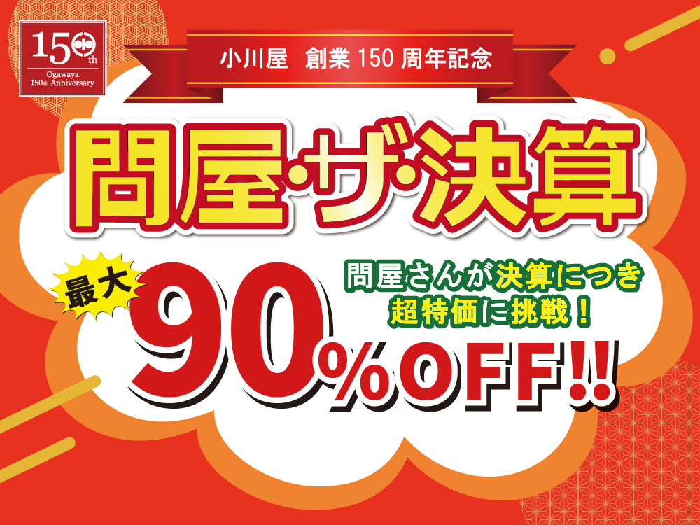 いつもお世話になっている問屋様の決算をお手伝いするため、全品を特別価格でご奉仕する「問屋・ザ・決算」を開催!