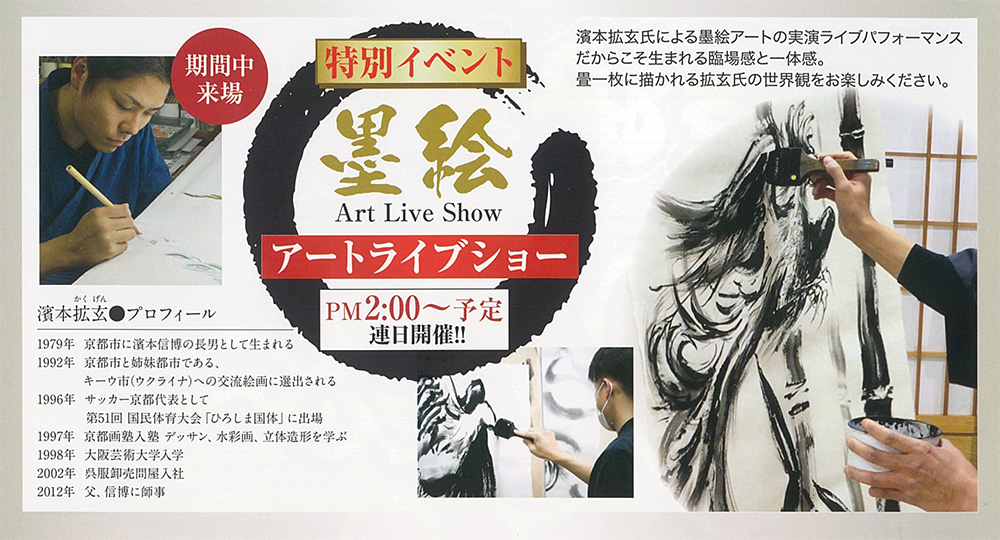 躍動感あふれる墨絵のライブパフォーマンスを間近でお楽しみいただけます。
