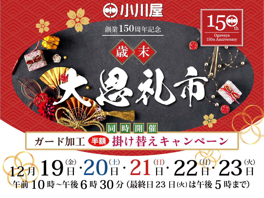 創業150周年を記念し、今年最後の大盤振る舞い!「歳末大恩礼市」を開催いたします。